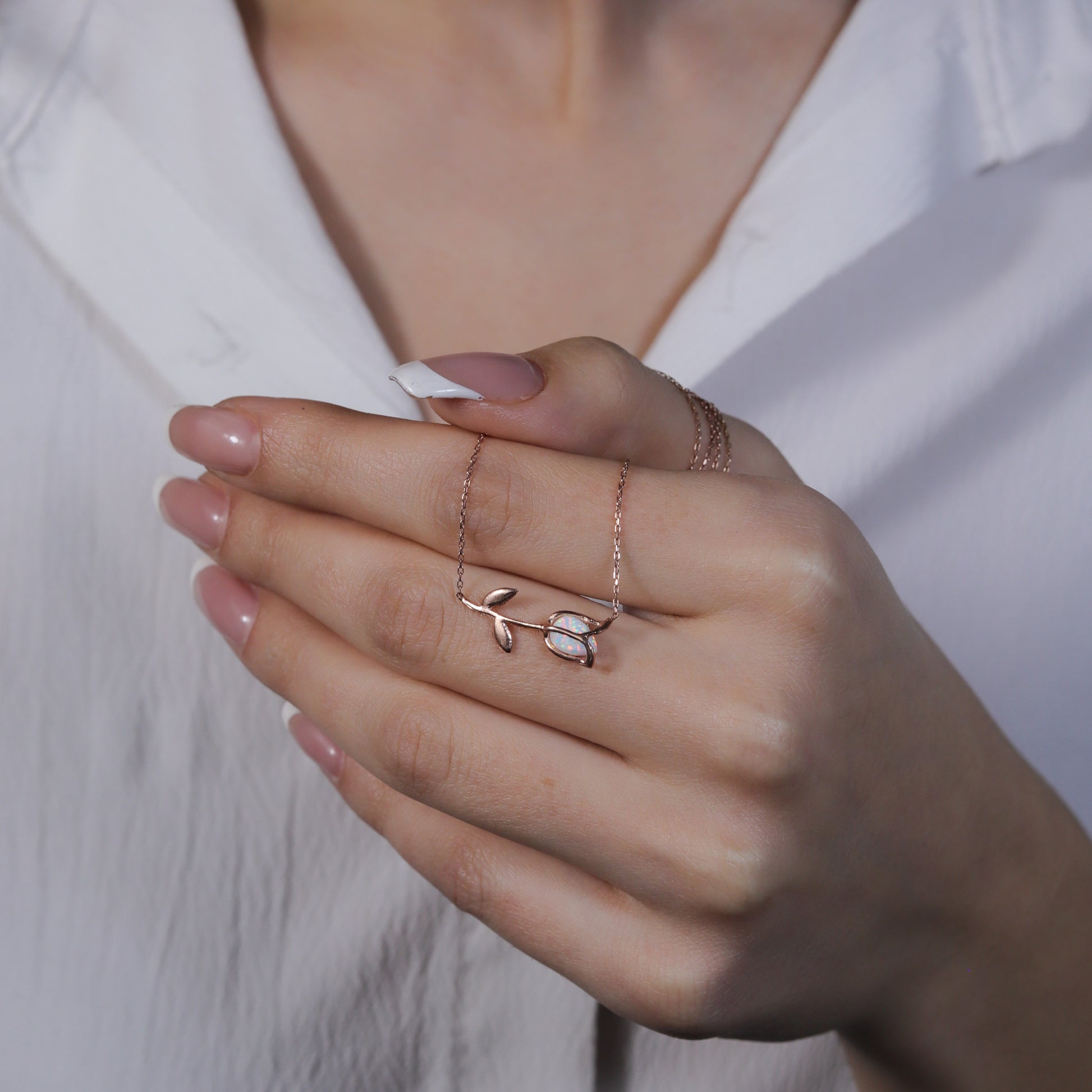 925 Ayar Gümüş Beyaz Opal Taşlı Lale Kolye Özellikleri: