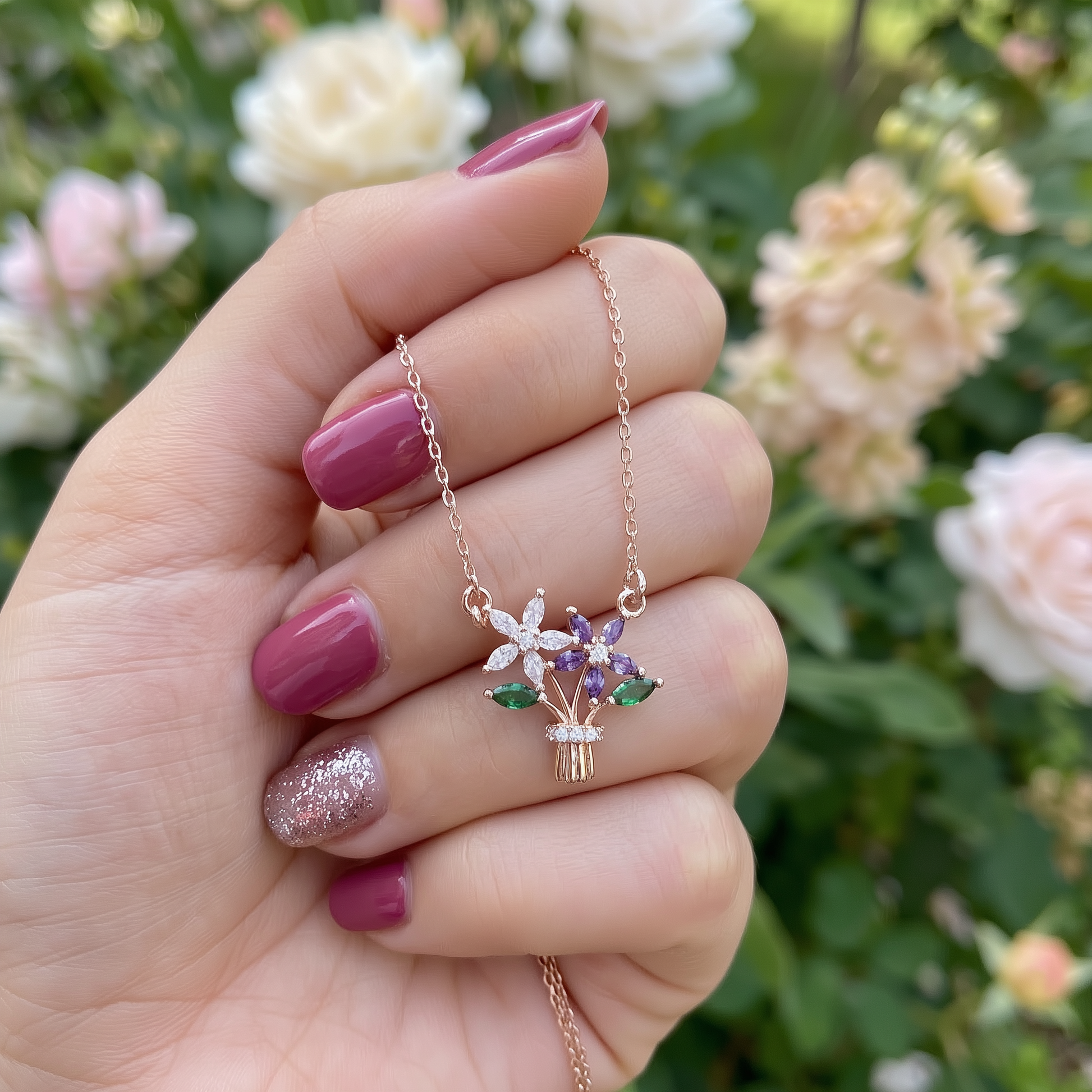 925 Ayar Gümüş Çiçek Buketi Kolye