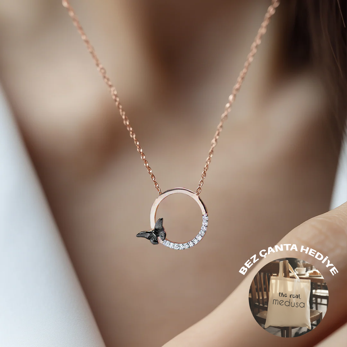 Kelebek Kolye 925 ayar gümüştür. Ürünümüz günlük kullanıma uygun olup şıklığınıza şıklık katmanın yanı sıra, değer verdiklerinizin içini ısıtacak eşsiz bir hediye tercihi olacaktır. Görseldeki ürün rose gold renktir.