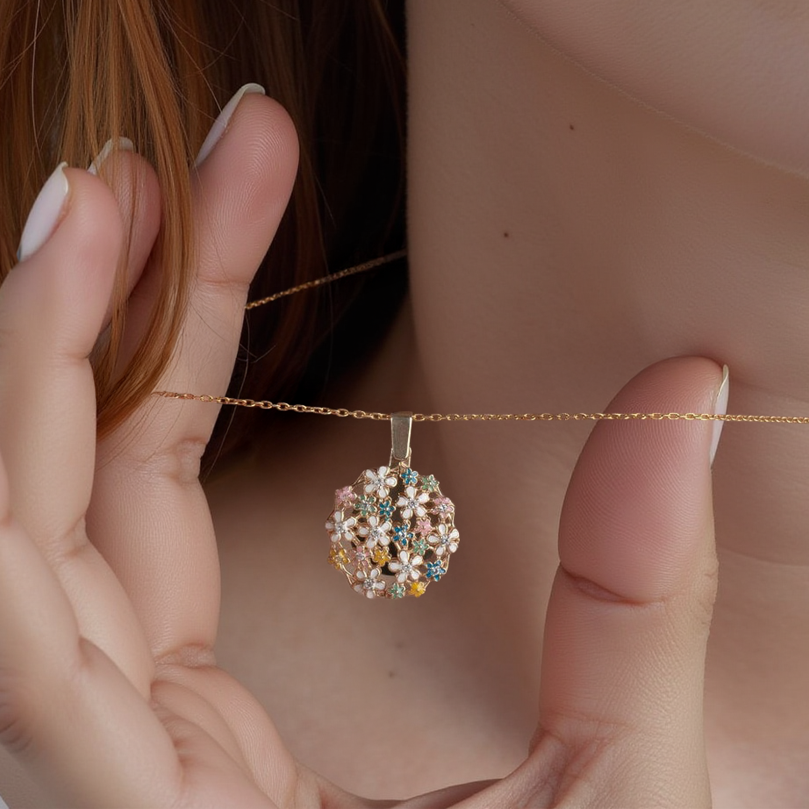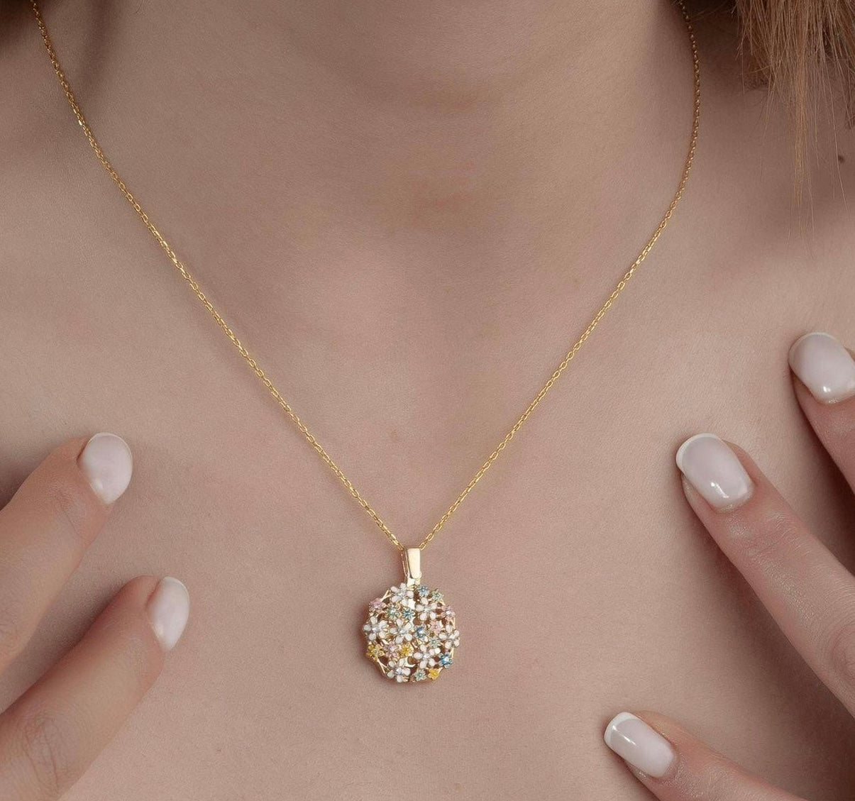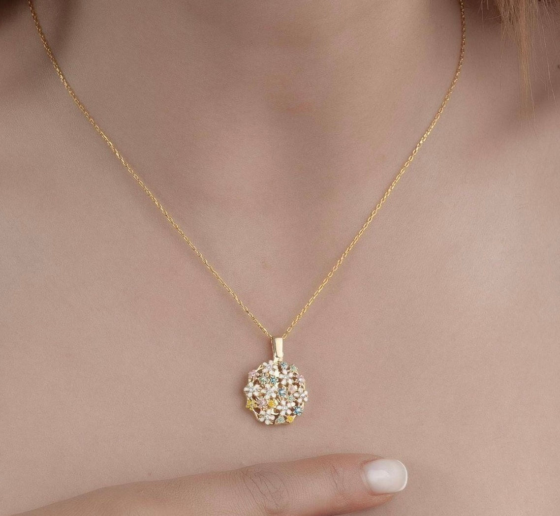 925 Ayar Gümüş Kişiye Özel Çiçek Bahçesi Kolye
