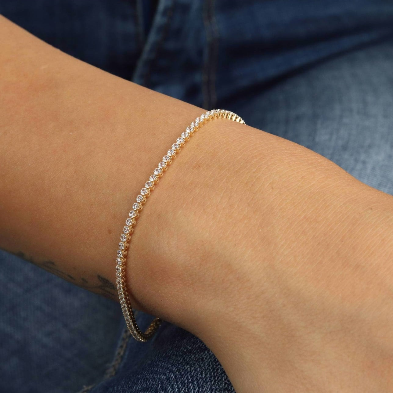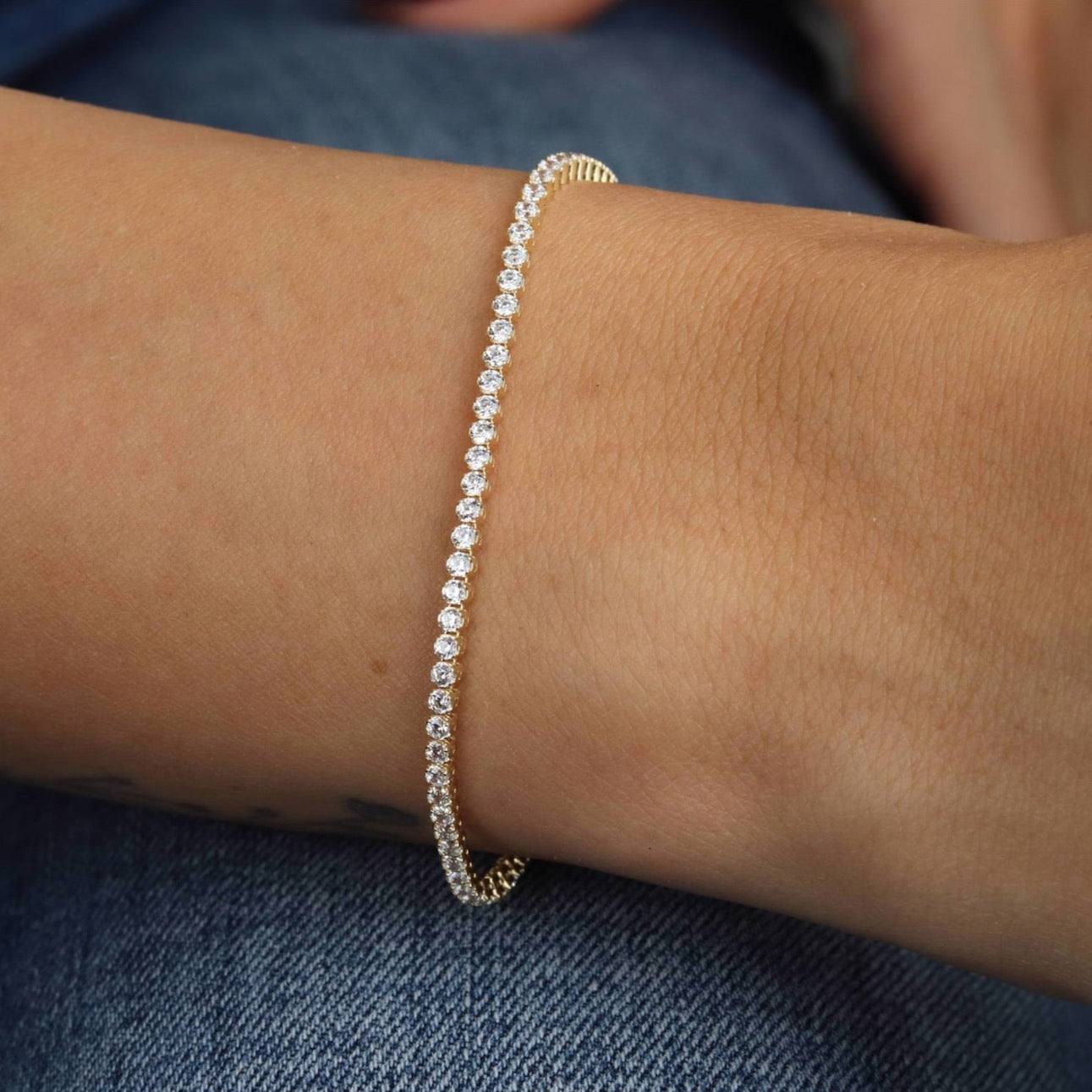 Gümüş Su Yolu Bileklik 925 ayar gümüştür ve üzerinde sıra beyaz taşlar işlenerek üretilmiştir. Görselde bulunan ürün gold renk ve 18 cm uzunluğundadır. Seçeneklerden ürün rengini değiştirebilirsiniz.