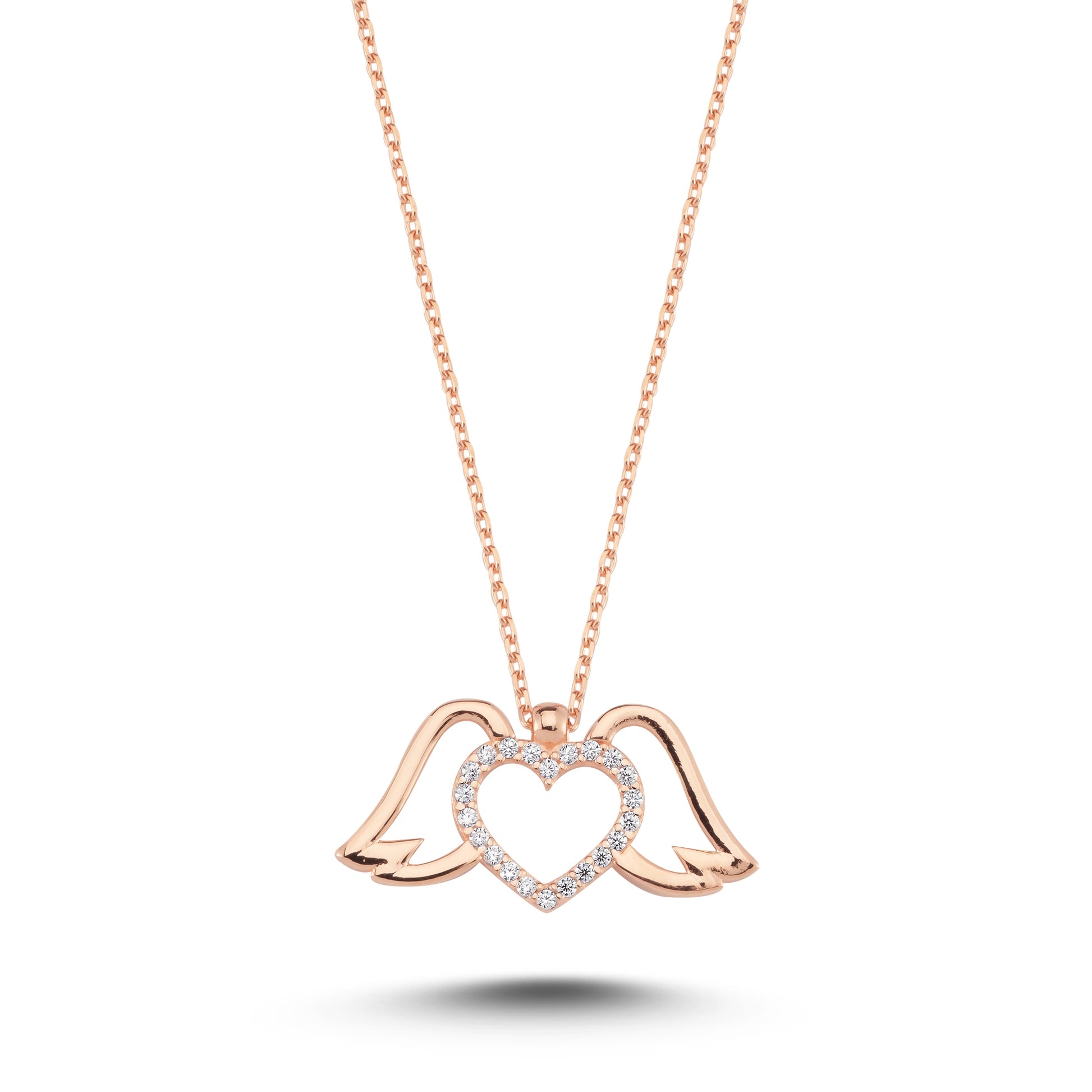 Taşlı Melek Kanatlı Kalp Kolye Özellikleri: