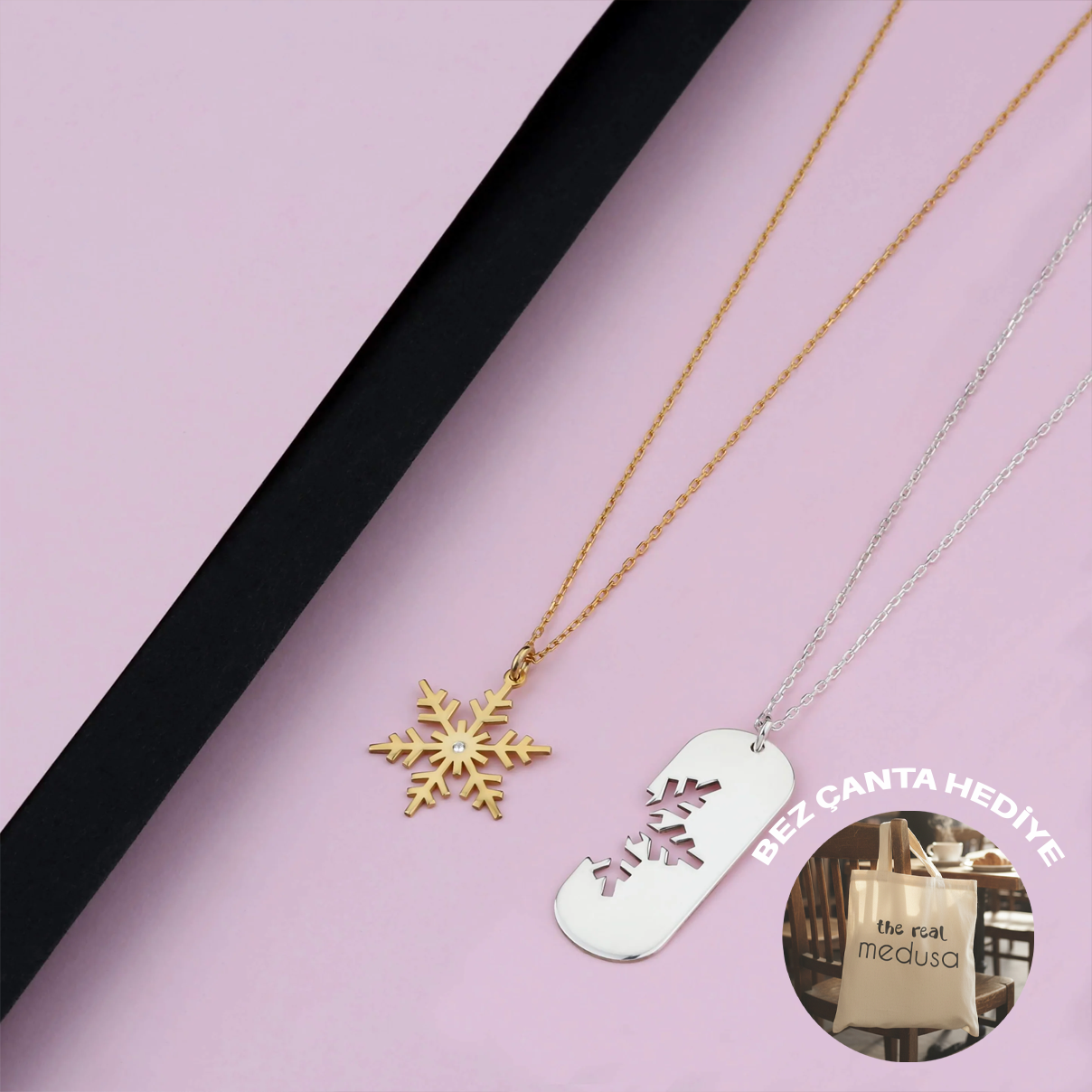 925 Ayar Gümüş Çift Kar Tanesi Kolye