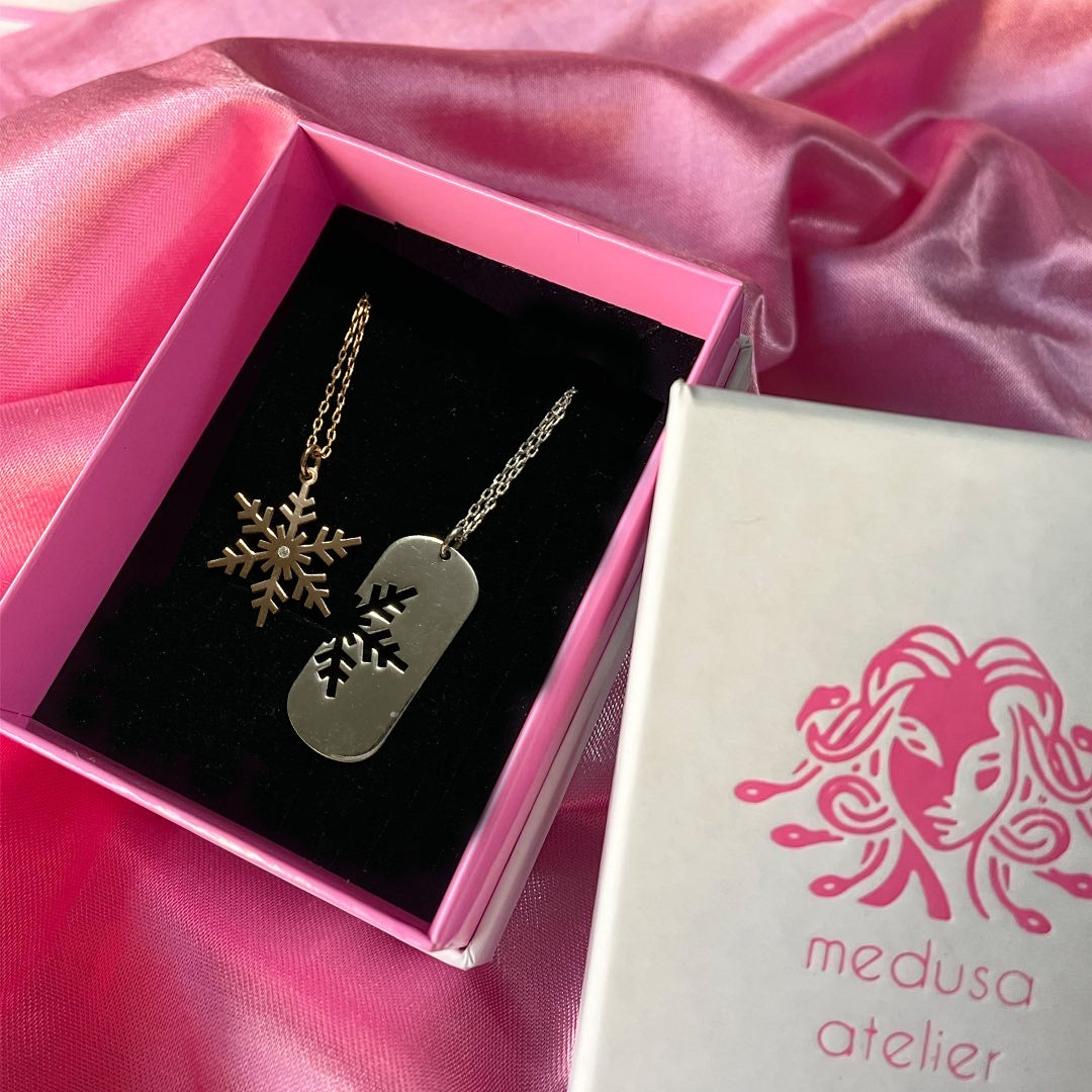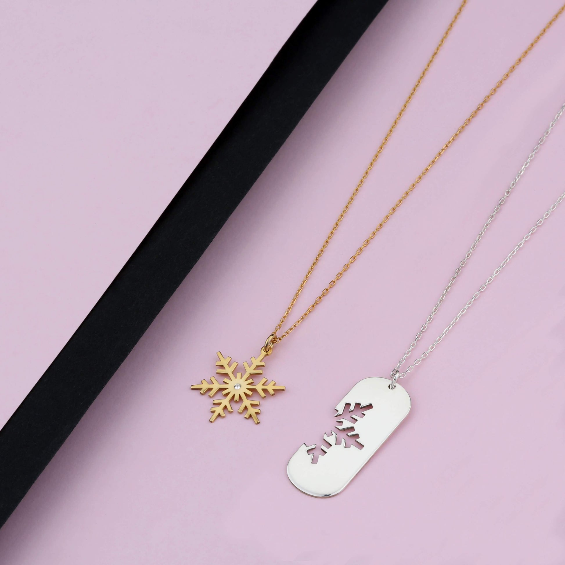 925 Ayar Gümüş Çift Kar Tanesi Kolye