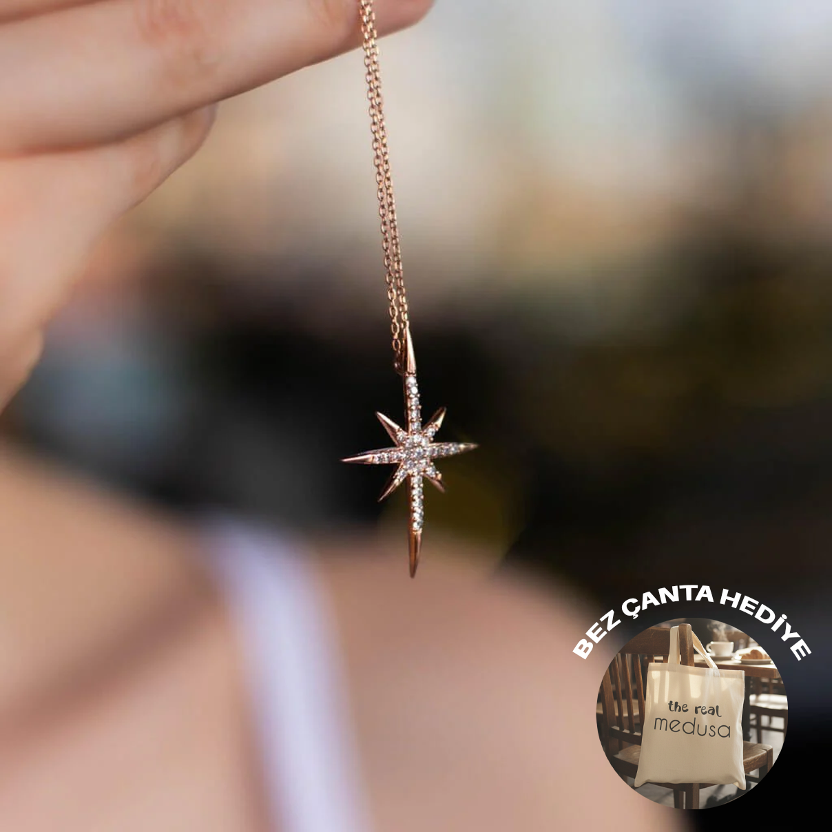 925 Ayar Gümüş Kutup Yıldızı Kolye